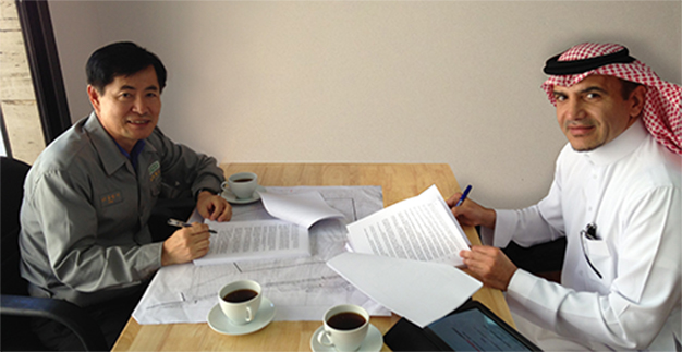 During contract signing last January 15, 2014 for Shuqaiq Steam Power Plant Project, (at the left side)? Mr. Yoo Hyo-Sik, Site Director of Hyundai Heavy Industries (HHI) and Eng. Morhaf Bu-khamsin (at the right side), General Manger of ETE Readymix Concrete.